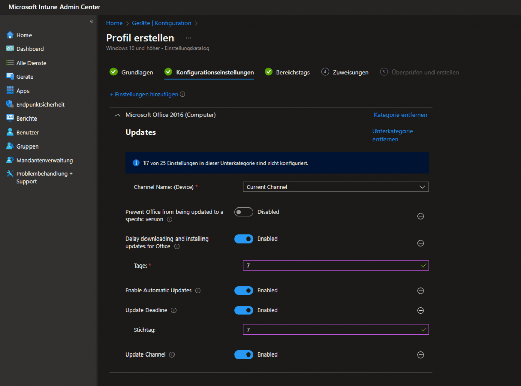 Hinweis: Ringe und Richtlinien können nur für Windows und Office definiert werden. Edge-Updates erfolgen automatisch und können nicht über Ringe oder Richtlinien gesteuert werden.